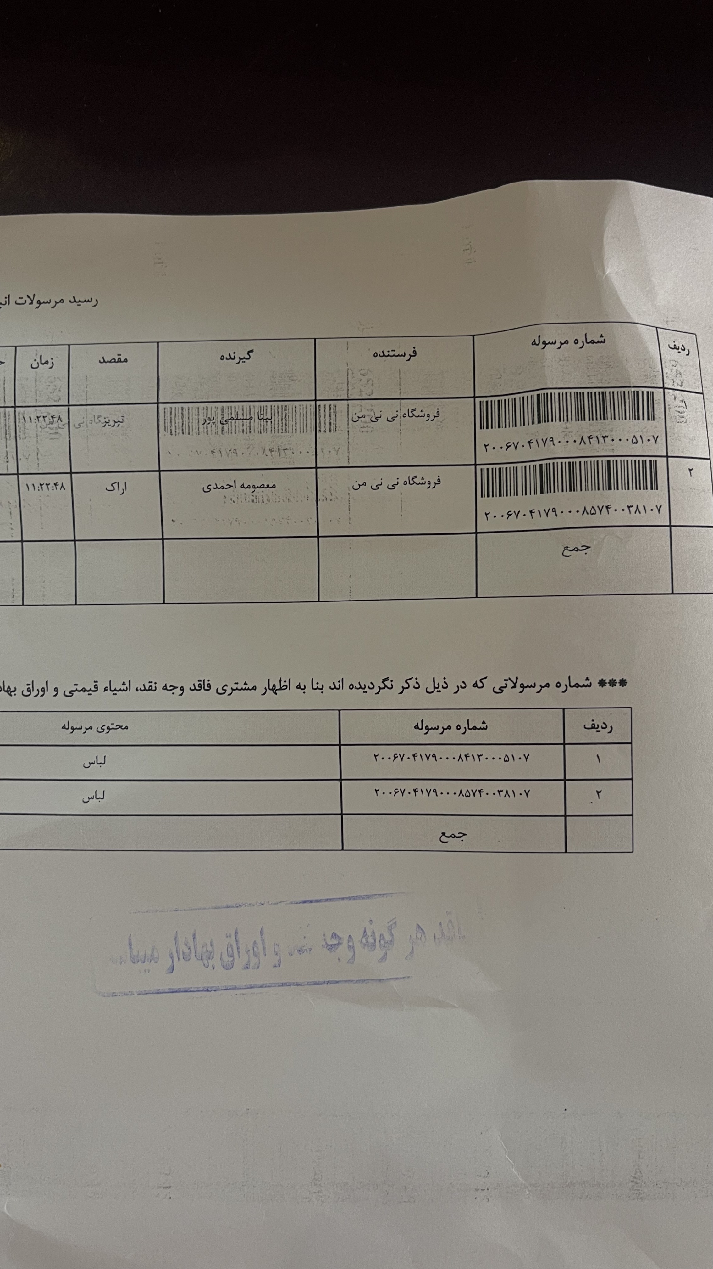 کد رهگیری مرسولات